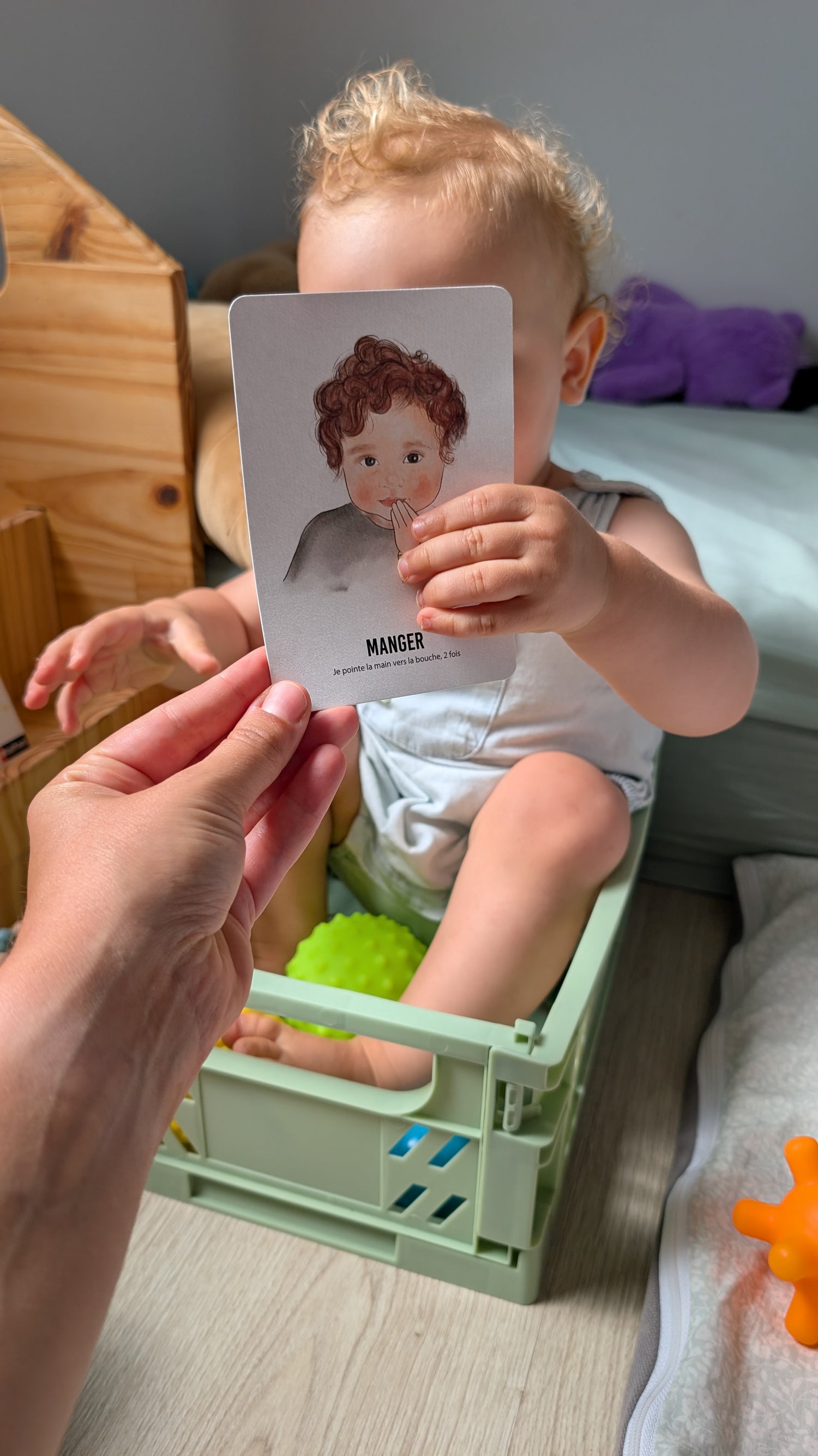 Cartes illustrées, affiches et guides pour communiquer avec ton tout-petit avant les mots. Tout ce qu'il te faut pour débuter en douceur, dès 6 mois.