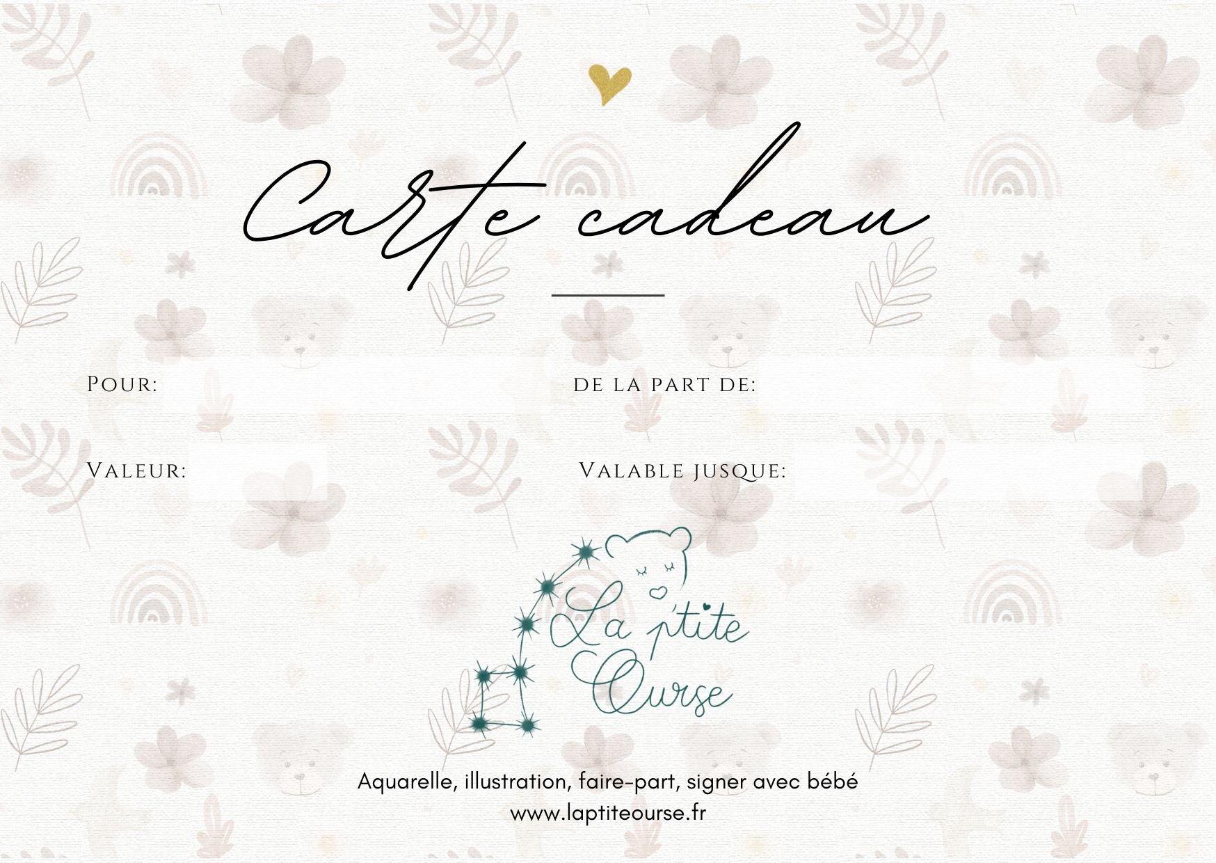 Soyez sûr de faire plaisir avec une carte cadeau la p'tite Ourse.